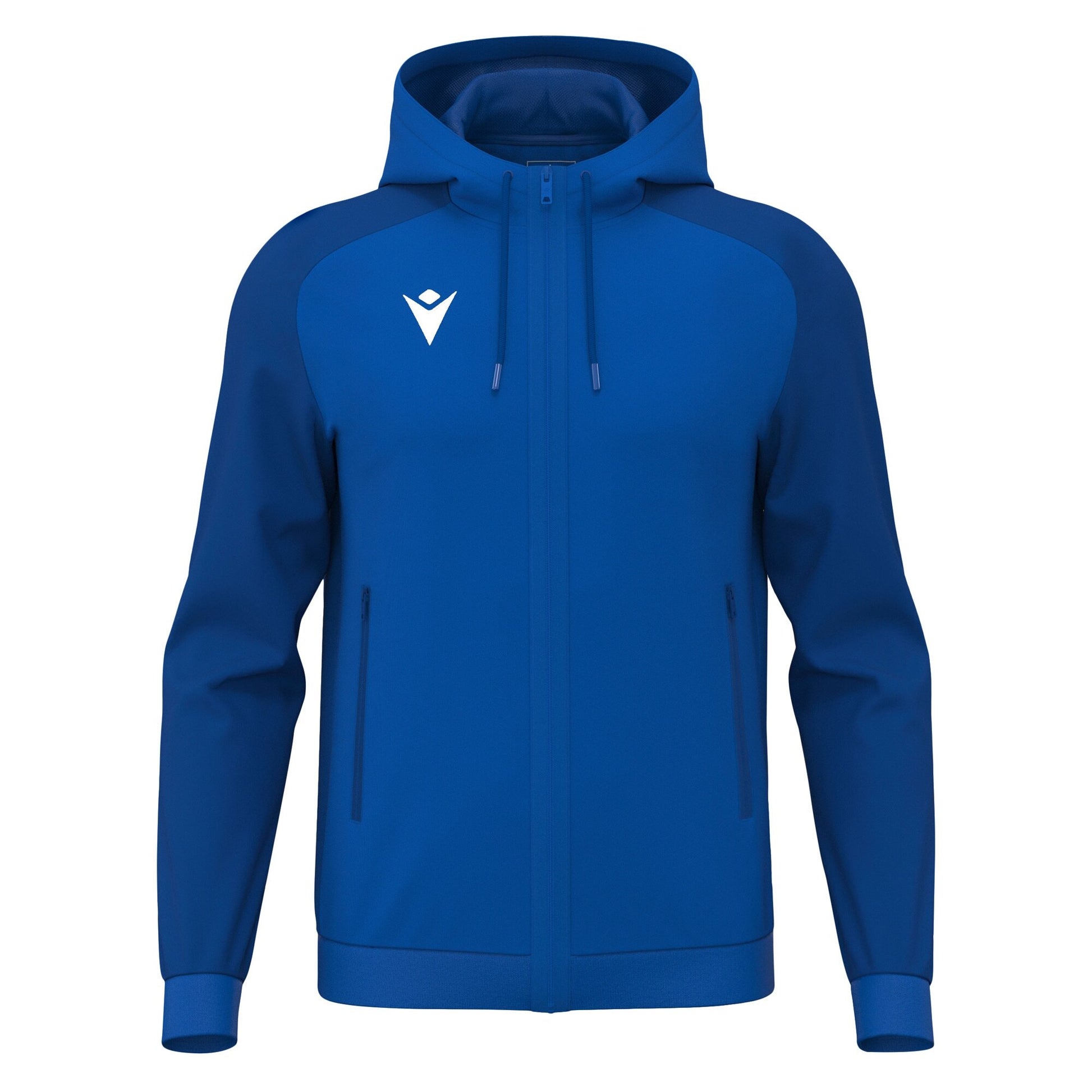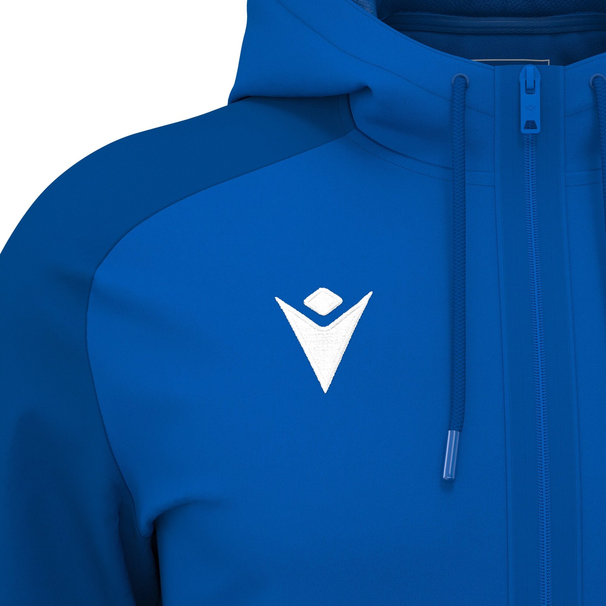 The Chronos full-zip hooded sweatshirt is designed to accompany athletes during travel and relaxation moments. Made from Poly Dry with Poly Fleece sleeves, it combines warmth and softness. The mesh-lined hood enhances inner comfort, while the nylon zip and metal pullers with the Macron Hero logo ensure durability and style. The hood with rounded drawstring and metal details, together with ribbed cuffs and hem, guarantees an optimal fit.