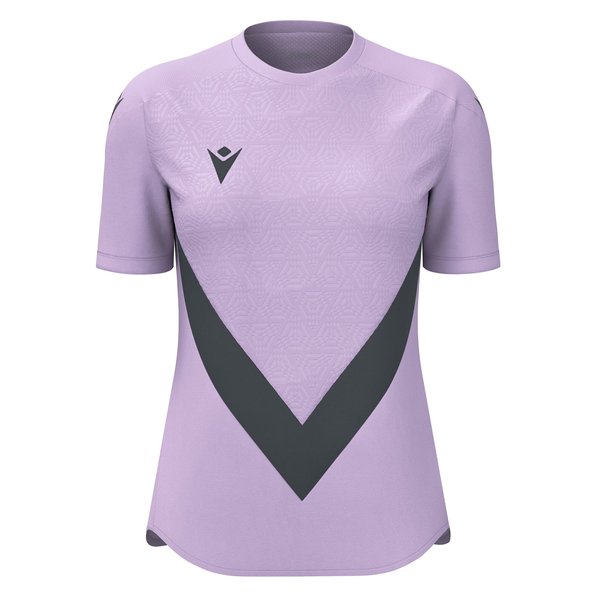 Women's game jersey made of Softlock fabric with a Micromesh back for enhanced breathability. The round neckline and ergonomic sleeve cut with Mesh inserts ensure optimal ventilation. The design is enriched with a geometric embossed print running along the body and precise finishes that define its profile. Available in various colors.