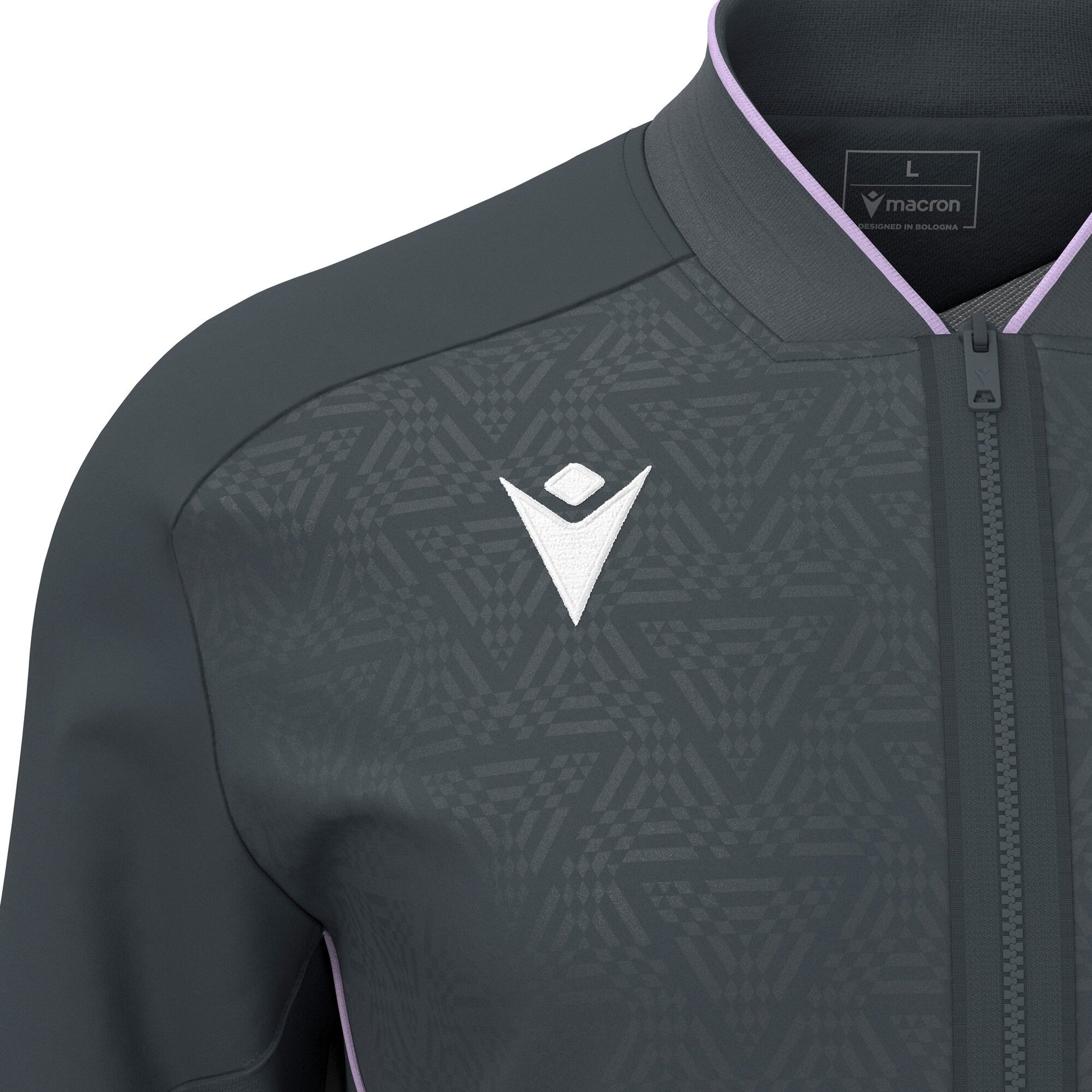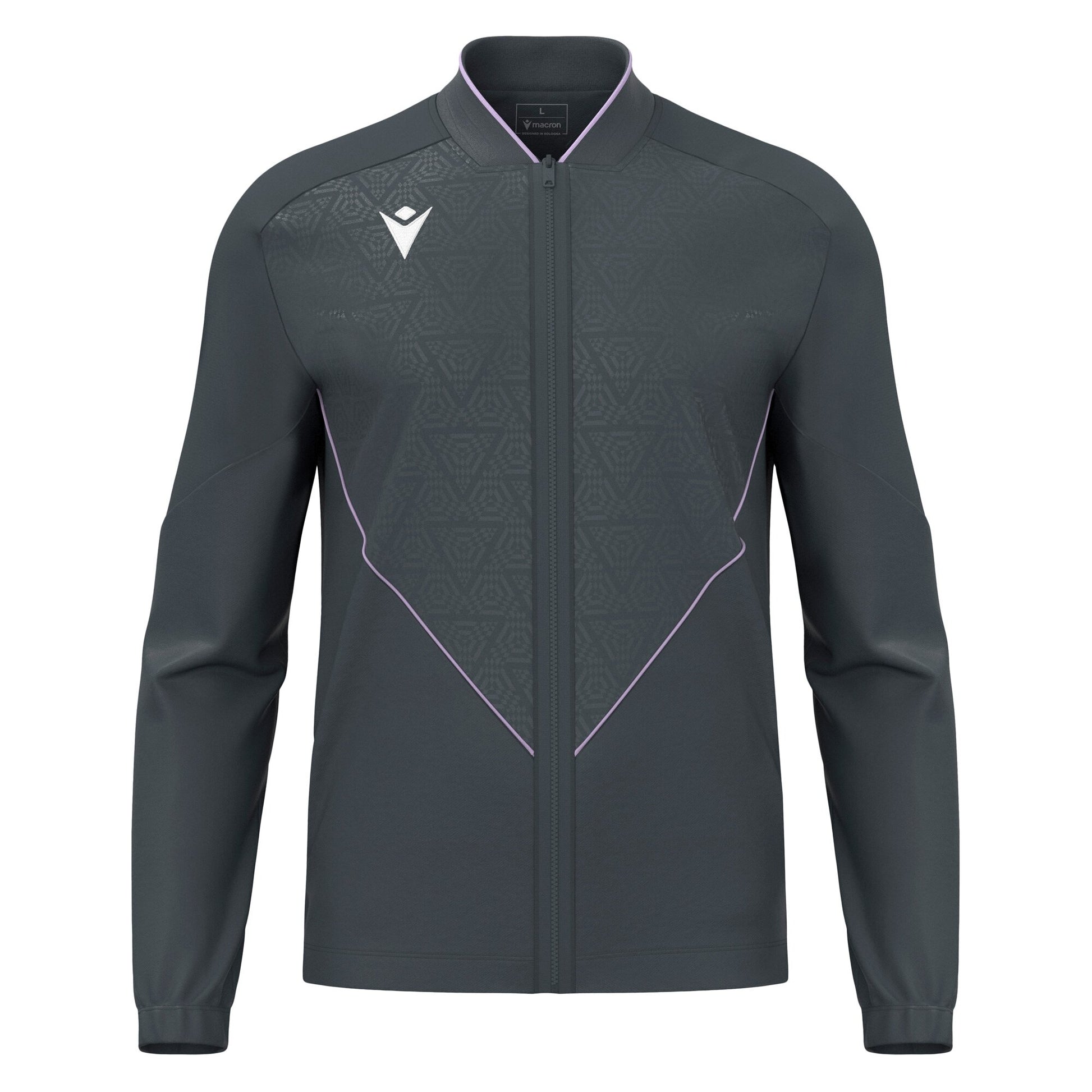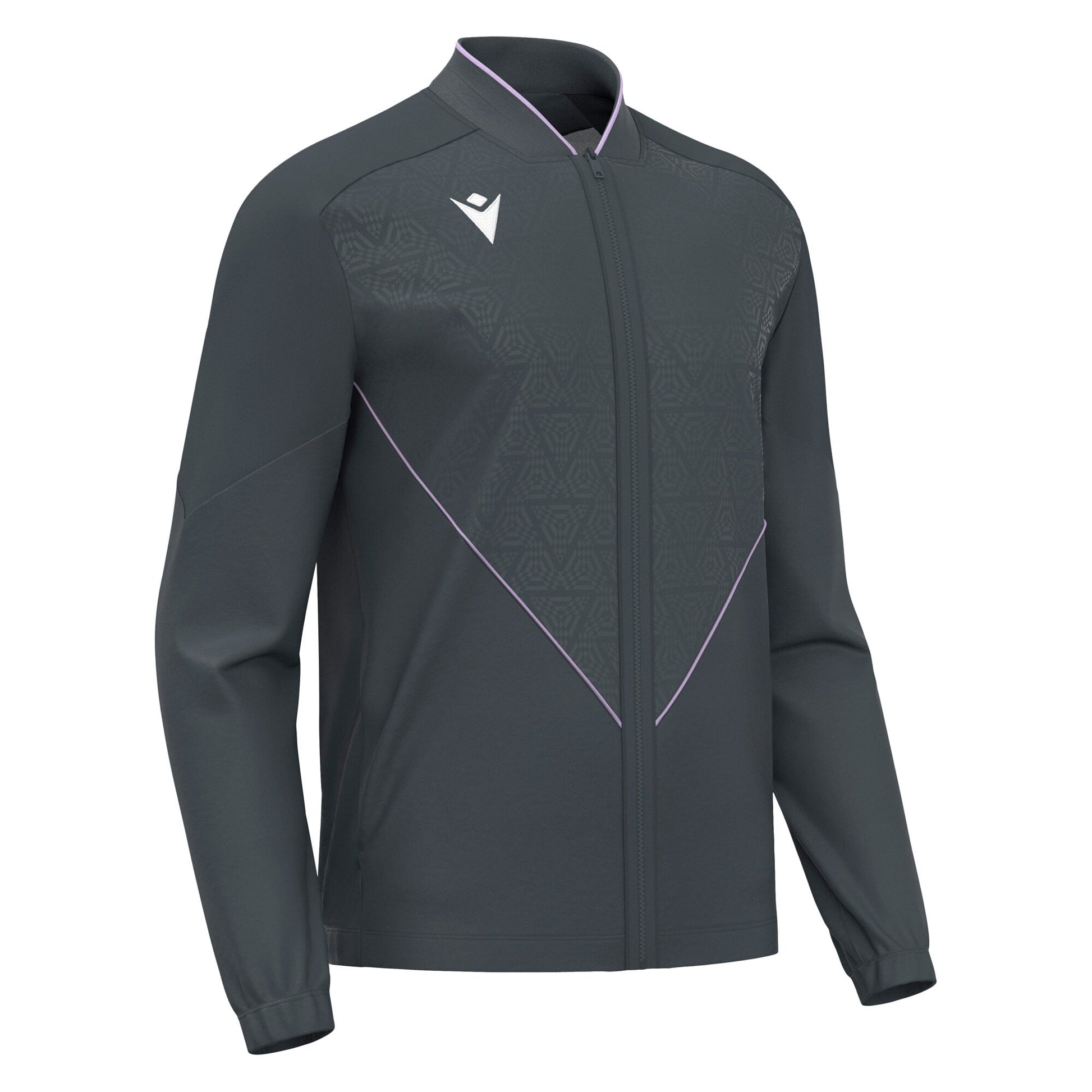 Full-zip representative top made of Polydiagonal and Stretch Microfiber, offering a perfect combination of advanced technology and functionality. Features an embossed front design and a central fused zip with a metal puller for secure closure. Equipped with two side pockets with reversed nylon zips to securely store essentials while on the move. Elastic cuffs, along with the ribbed hem, ensure a secure and comfortable fit. Available in various colors.